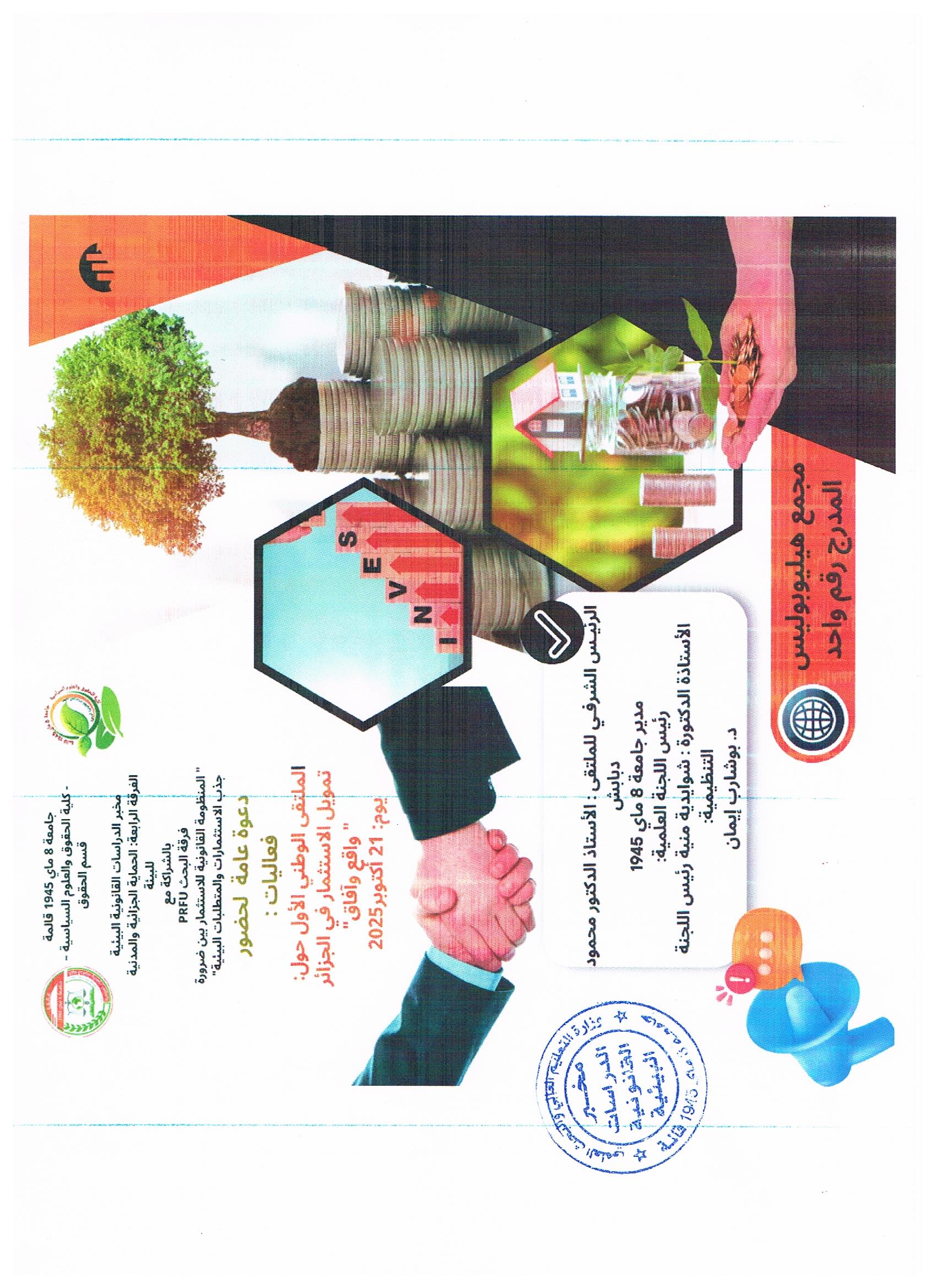 دعوة لحضور فعاليات الملتقى الوطني الاول حول تمويل الاستثمار في الجزائر